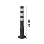 75 cm siyah delinatör, esnek, kırılmaz, kaliteli yapısı ile montajlandığı alanda uzun yıllar kullanım sağlar. Körüklü ayakları sayesinde olası çarpmalarda zarar vermeden ve zarar görmeden eğrilip yeniden doğrulabilir. Üzerinde 3 adet reflektif uyarıcı bulunmaktadır. Bu sayede karanlık ortamlarda parlayarak görüş kolaylığı sağlar.