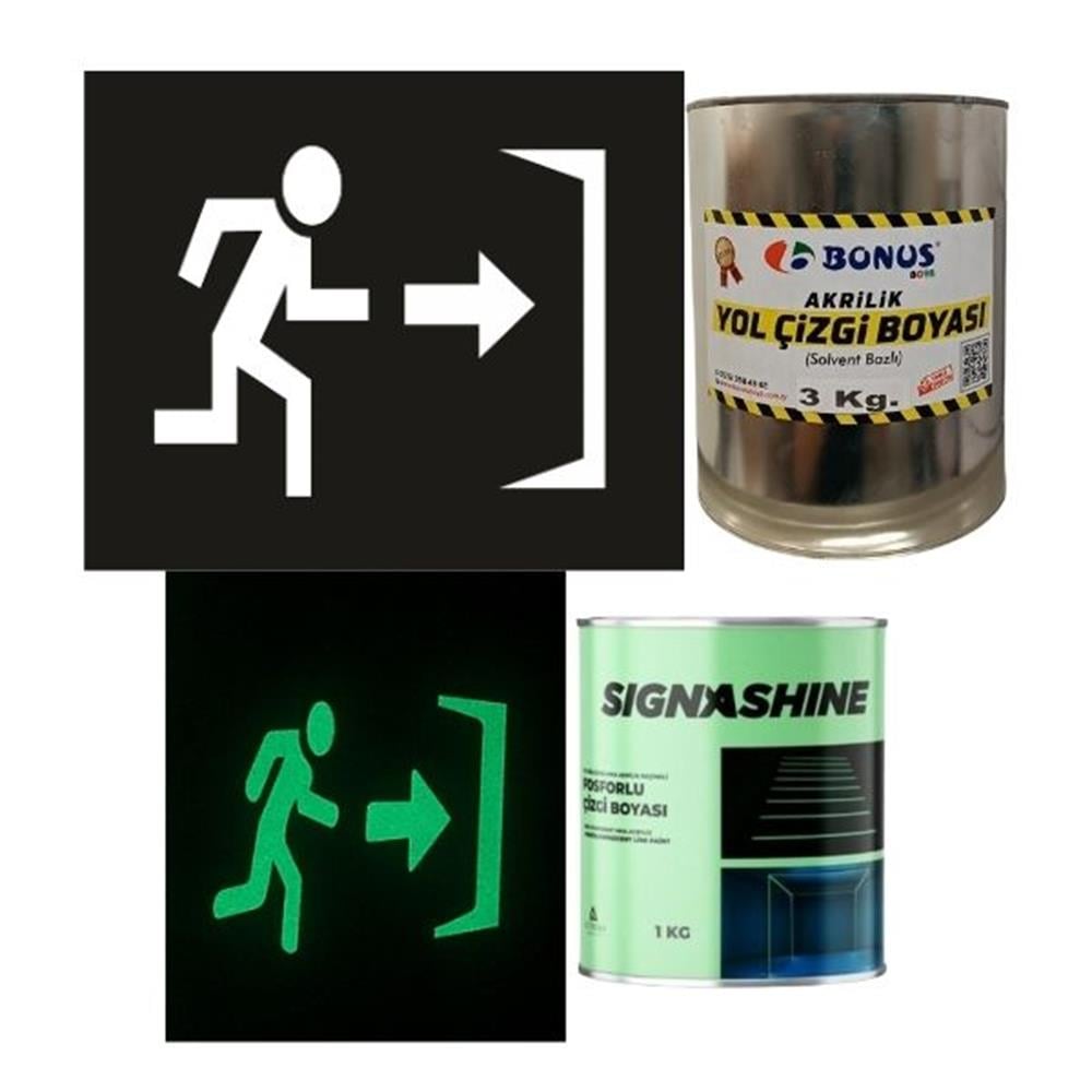 Acil Çıkış Boyama Şablonu ve Fosforlu Boya Seti