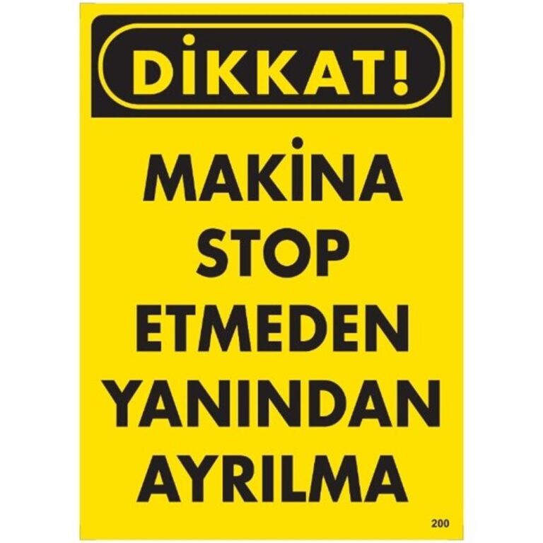 Makina Stop Etmeden Yanından Ayrılma Uyarı Levhası