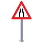 İki Taraftan Daralan Kaplama Levhası, yolun ilerisinde daimi veya arıza nedeniyle kaplamanın her iki taraftan daralmış olduğunu bildirir.