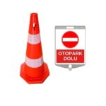 Çift reflektifli trafik konisi üzerine kolaylıkla montajlanabilen, 30×30 levha üzerine müşterilerin isteğine göre çift taraflı veya tek taraflı baskı yapılır. Koni yüksekliği 75 cm ve levha yüksekliği 30 cm dir. Toplamda setimizin uzunluğu 105 cm’dir. Toplam ağırlığı 2 kg gelmektedir.