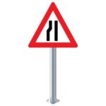 Soldan daralan kaplama levhası, yolun ilerisinde daimi veya arıza nedeniyle kaplamanın soldan daralmış olduğunu belirtmektedir.